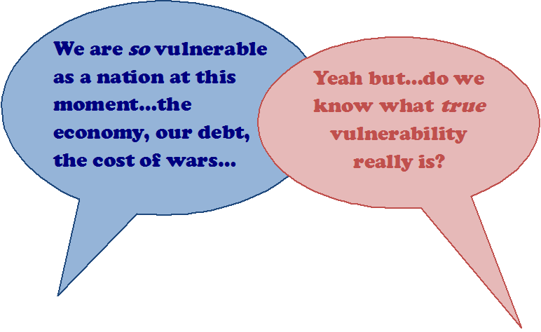 For Reflection: Perhaps adopting the vulnerability of other human beings is just one way to overcoming our own vulnerability, whether fabricated or real. Is this the type of positive response that Jim Wallis was talking about?
