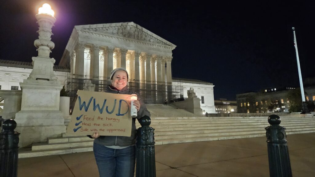 Outside the Supreme Court in February at an emergency interfaith prayer vigil for foreign aid. Participating in advocacy events and protests is one of the ways I have made use of my time while out of work this year.